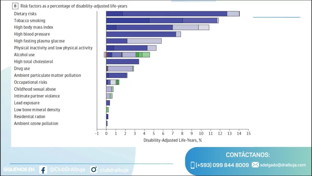 Como se puede observar, los riesgos dietéticos ocupan el primer lugar como factor de riesgo relacionado con muertes y años de vida ajustados por discapacidad, superando incluso al tabaquismo. Esto pone de manifiesto la impactante verdad de que lo que ponemos en nuestro plato podría tener más influencia en nuestra salud a largo plazo que el hábito de fumar. Adoptar una dieta rica en carbohidratos saludables es un paso esencial para cambiar este sombrío panorama y fomentar una nación más sana.